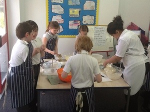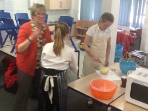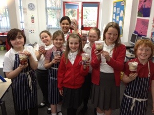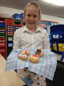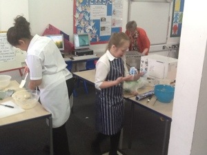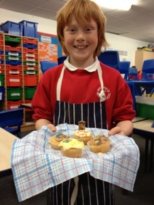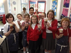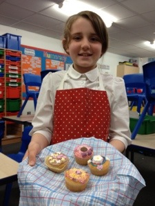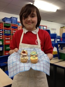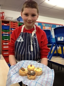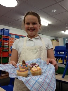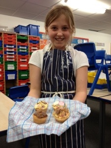 On the first week we made a microwave syrup pudding , then strawberry fool , then pasta bake ,then scones and last week we decorated cupcakes . Next we are doing a bake off ! Thank you Mrs Shelly for so much fun !