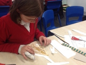 In class today we made Leanardo da Vinci’s first flying machine. First we had to make our plan for the machines and put how we would make it stronger, we had to tell each other how to make our planes light but also being able to fly. Then we had to make our glider out of lollipop sticks. The hardest part was when the glue kept on coming out of place and ruining our gliders.