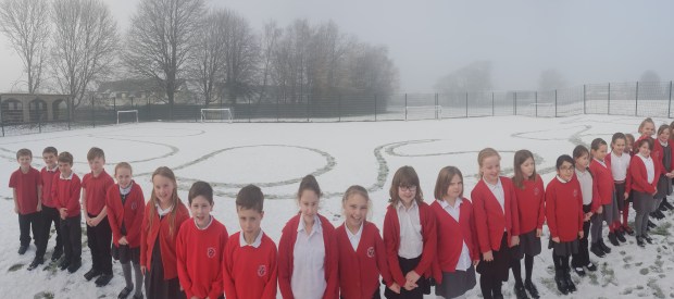 Our cursive handwriting practise took a strange turn this afternoon, when we set about writing Base 6 in the snow as a class.