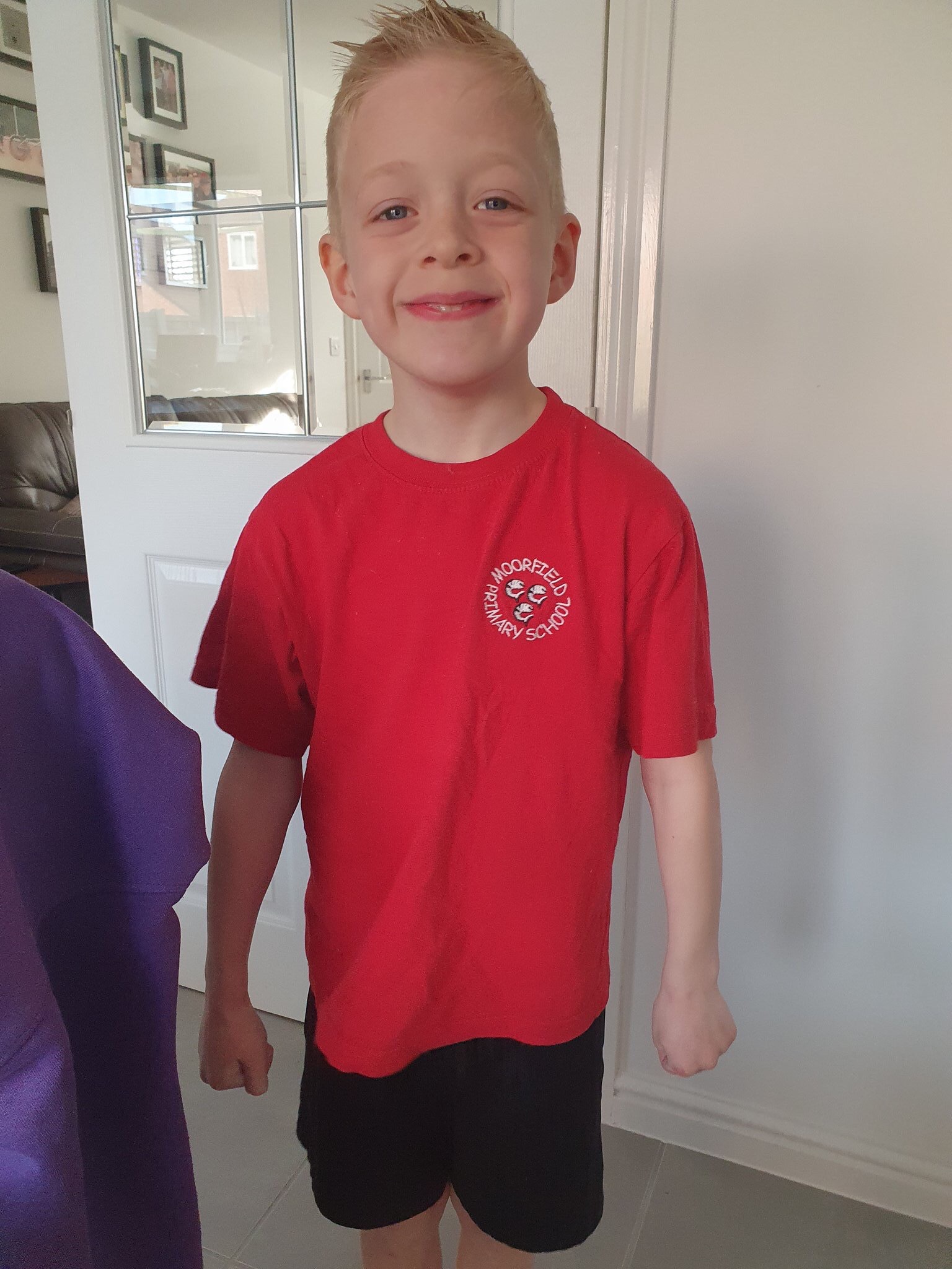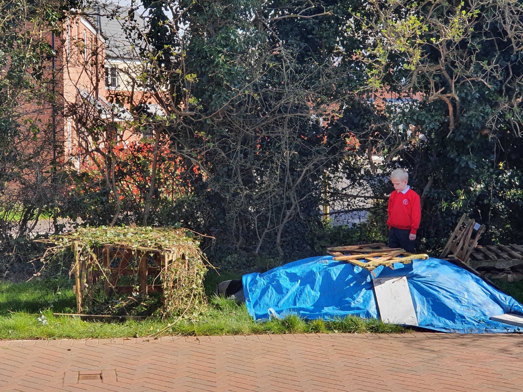 Today Cooper started with PE and then he did a few lessons . He did some den building outside for a lunch break . Well done Cooper ! We all love that you still want to wear your uniform!