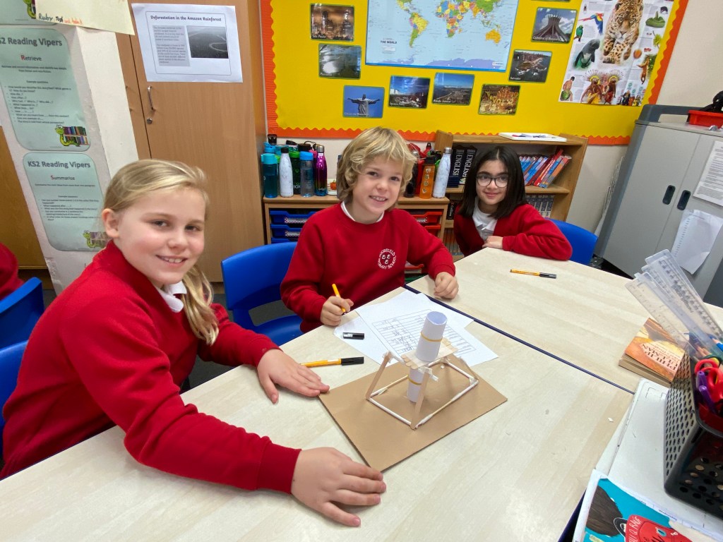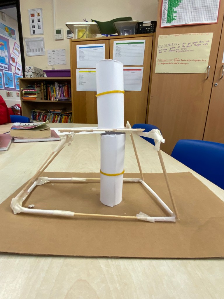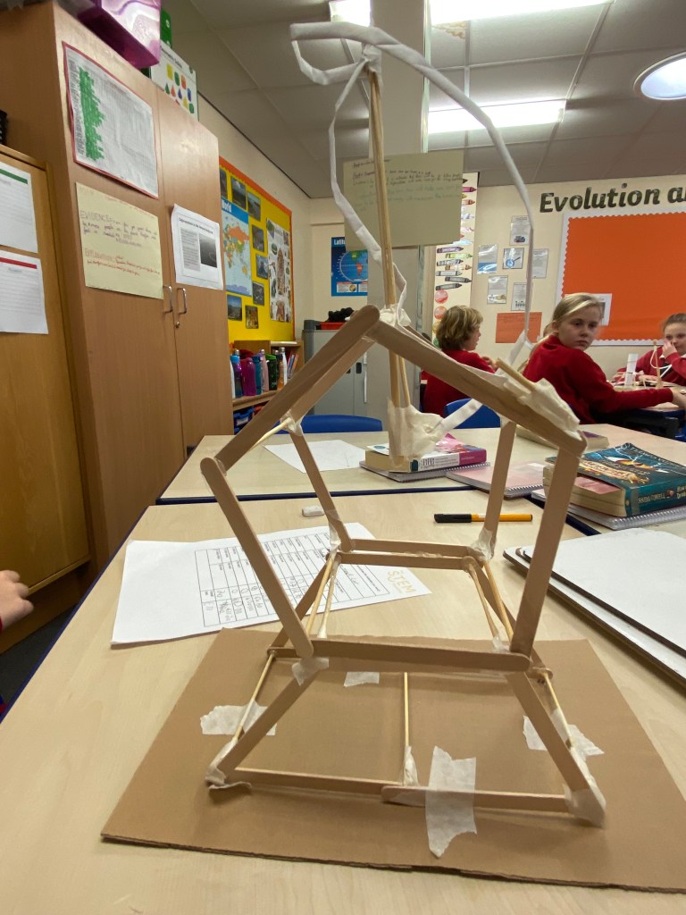 Today some of the Year 5 and 6 children took part in a STEM workshop. The children were looking at strong structures and worked in groups to design and build their own.